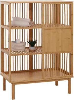 Bambus Standregal HWC-N81, Badezimmerschrank Badschrank Badregal Kommode, 3 Regalböden Schiebetür FSC® 115x80x45cm