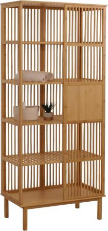 Bambus Standregal HWC-N81, Badezimmerschrank Badschrank Badregal Kommode, 5 Regalböden Schiebetür FSC® 186x80x45cm