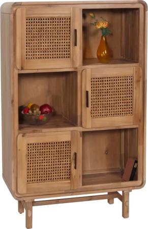 Sideboard HWC-M47, Schrank Kommode Highboard Anrichte, Staufächer, Rattan Akazie Massiv-Holz gebeizt 82x160x45cm 38kg