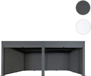 Hardtop Pergola HWC-M81, Pavillon, Aluminium Dachstreben 7cm-Stahlgestell mit Seitenwand und Moskitonetz 3,6x3m ~ grau