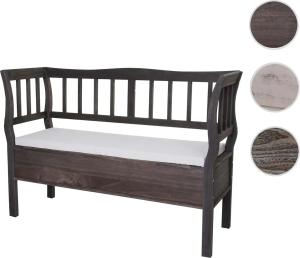Sitzbank T207, Bank Truhenbank Holzbank Aufbewahrungstruhe, Staufach Kissen Holz 119cm ~ grau-braun, shabby