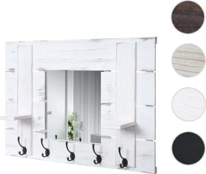 Wandgarderobe HWC-C89 mit Spiegel, Garderobenpaneel Garderobe, Shabby-Look Vintage, 5 Haken 90x60cm ~ weiß, shabby