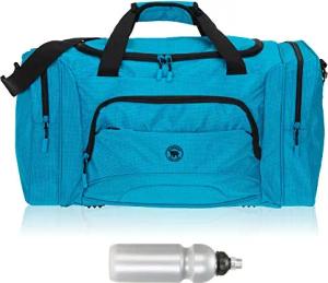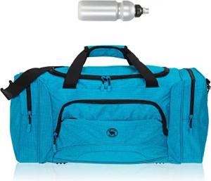 Sporttasche Fitness Tasche Damen Herren Kinder 46 cm 24 L Plane wasserabweisend Schuhfach Nassfach Reisetasche Handgepäck Freizeittasche Hydo Gym Bag 12891 + Trinkflasche (Uni Blau)