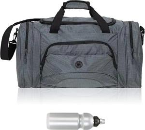 Sporttasche Fitness Tasche Damen Herren Kinder 46 cm 24 L Plane wasserabweisend Schuhfach Nassfach Reisetasche Handgepäck Freizeittasche Hydo Gym Bag 12891 + Trinkflasche (Uni Grau)