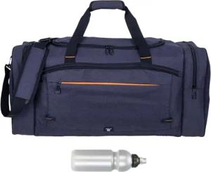 Sporttasche Reisetasche groß Damen Herren Large 53 cm 40 L Nassfach Sport Fitness Sauna Gym Bag Fitnesstasche Tasche groß Accent 1356 Large + Trinkflasche (Dunkelblau (Blau))