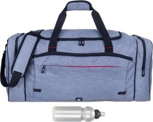 Sporttasche Reisetasche groß Damen Herren Large 53 cm 40 L Nassfach Sport Fitness Sauna Gym Bag Fitnesstasche Tasche groß Accent 1356 Large + Trinkflasche (Grau (Hellgrau))
