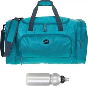 Sporttasche groß Damen Herren Trainer Large 55 cm 40 L Nassfach Reisetasche Sport Fitness Sauna Saunatasche Schwimmtasche Tasche groß 1243 + Trinkflasche (Petrol Türkis (türkis))