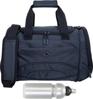 Sporttasche klein Damen Herren Kinder Trainer Small 42 cm 18 L Reisetasche Sport Reise Gymbag Arbeit Fitness Schule Gym Bag Tasche 1242 + Trinkflasche (Dark Marine Blue (blau))
