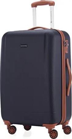 Wannsee - Mittelgroßer Hartschalen-Koffer Trolley Rollkoffer Reisekoffer, TSA, 68 cm, 63 Liter, Dunkelblau/Braun