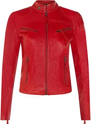 Damenjacke 100% Echtleder Slim Fit Klassischer Ausschnitt Rot XL