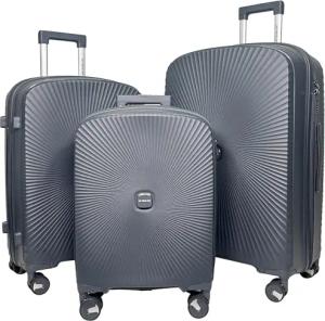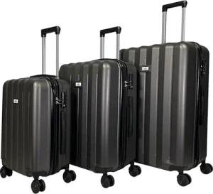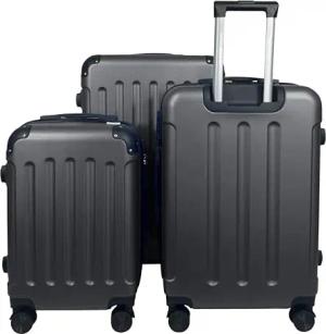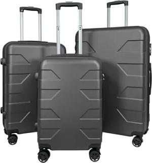 Hartschalen-Koffer Reisekoffer ABS Koffer (Handgepäck-Mittel-Groß-Set) 4 Doppel-Rollen Trolley (Anthrazit, 3er Set)