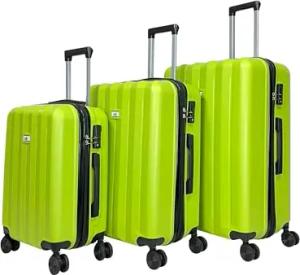 ABS Hartschalen-Koffer Trolley Reisekoffer Tasche (Handgepäck-Mittel-Groß-Set) Zwillingsrollen (Grün, 3er Set)