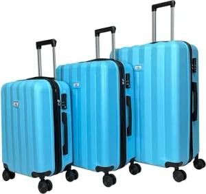 ABS Hartschalen-Koffer Trolley Reisekoffer Tasche (Handgepäck-Mittel-Groß-Set) Zwillingsrollen (Hellblau, 3er Set)