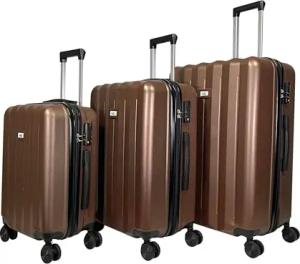 ABS Hartschalen-Koffer Trolley Reisekoffer Tasche (Handgepäck-Mittel-Groß-Set) Zwillingsrollen (Kaffee, 3er Set)