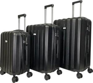 ABS Hartschalen-Koffer Trolley Reisekoffer Tasche (Handgepäck-Mittel-Groß-Set) Zwillingsrollen (Schwarz, 3er Set)