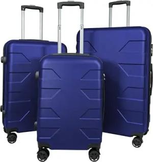 Hartschalen-Koffer Reisekoffer ABS Koffer (Handgepäck-Mittel-Groß-Set) 4 Doppel-Rollen Trolley (Dunkelblau, 3er Set)