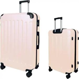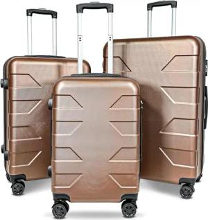 Hartschalen-Koffer Reisekoffer ABS Koffer (Handgepäck-Mittel-Groß-Set) 4 Doppel-Rollen Trolley (Rose-Gold, 3er Set)