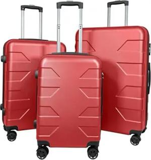 ABS Koffer Trolley Reisekoffer Zwillingsrollen (Handgepäck-Mittel-Groß-Set) Nummernschloss (Rot, 3er Set)
