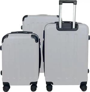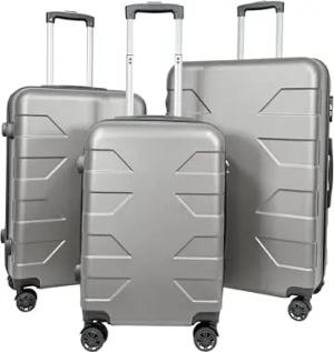 ABS Koffer Trolley Reisekoffer Zwillingsrollen (Handgepäck-Mittel-Groß-Set) Nummernschloss (Silber, 3er Set)