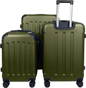 Hartschalen-Koffer Trolley Tasche Reisekoffer Polypropylen (Handgepäck-Mittel-Groß-Set) 360° Zwillingsrollen (Army-Grün, 3er Set)