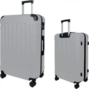 Hartschalen-Koffer Trolley Reisekoffer (Handgepäck-Mittel-Groß-Set) 4 Doppel-Rollen (Großer Koffer (75cm), Silber)