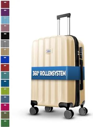 Hartschalen-Koffer Trolley ABS Reisekoffer 4 Zwillingsrollen (Handgepäck-Mittel-Groß-Set) + 5cm Dehnungsfuge (Champagne, Handgepäck (55cm))