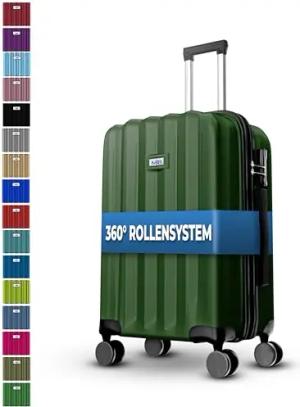 Hartschalen-Koffer Trolley Tasche Reisekoffer Polypropylen (Handgepäck-Mittel-Groß-Set) 360° Zwillingsrollen (Army-Grün, Handgepäck (57cm))