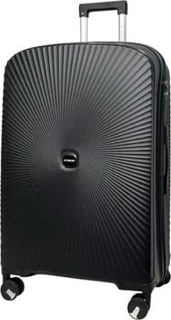 Hartschalen-Koffer Trolley Tasche Reisekoffer Polypropylen (Handgepäck-Mittel-Groß-Set) 360° Zwillingsrollen (Schwarz, Großer Koffer (77cm))