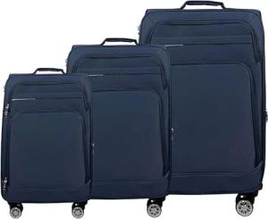 Stoff Reisekoffer Trolley Erweiterbar mit Zwillingsrollen (M/L/XL/XXL oder 4er Set) Weichgepäck (Blau, 3er Set)