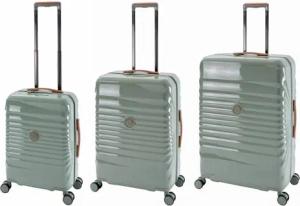 Roma Reisekoffer mit USB & Getränkehalter, Hartschale, Alu-Rahmen, Extrafach, 2xTSA, 65x40x25 cm, Salbeigrün
