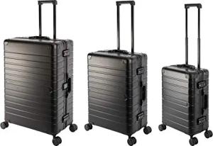 Koffer Oslo · 3-teiliges Set · Komplett aus Aluminium · 4 leiselaufende Doppelrollen · TSA · Reisegepäck Reisekoffer · Vol. S-44L · M-72L ·L-102L· Schwarz