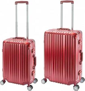 Oslo Kofferset 2 Teilig, S-55cm & M-65cm Aluminium Hartschalen Trolley, Carry-on + Check-in Koffer, Reisekoffer Spinner mit 4 Rollen und doppelte TSA Schloss 39L + 72L (Rot)