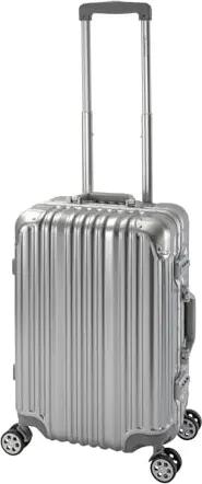London Handgepäck Koffer, Aluminium Rahmen Polycarbonate Hartschale mit 4 Silent Move Doppelrollen 2X TSA Zahlenschloss 55Lx37Bx23Hcm 47L Silber