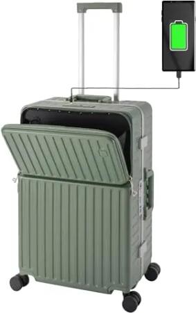 Roma Reisekoffer mit USB Anschluss & Getränkehalter, Hartschale, Alu-Rahmen, Extrafach, 2xTSA, 65x40x25 cm, Grün