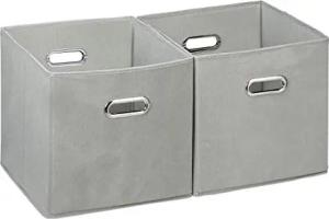 2 x Aufbewahrungskorb, Stoffbezug, Bambus, rechteckig, Bad, Accessoires, Spielzeug, HxBxT: 20x31x31cm, Regalkorb, grau