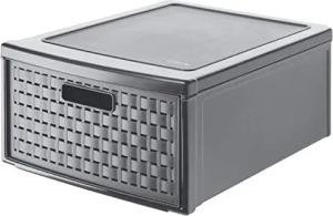 Country Schubladenbox 19.2l mit 1 Schub in Rattan-Optik, Kunststoff (PP) BPA-frei, anthrazit, groß/19.2l (45.0 x 34.0 x 20.0 cm)