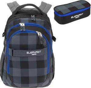 2 Teile Set Rucksack Signature Hero Schulrucksack 12723 + Mäppchen Box (Plaid Blau 12609)