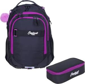 2 Teile Set Rucksack Signature Hero Schulrucksack 12723 + Mäppchen Box (Tiff Lila Black 13015)