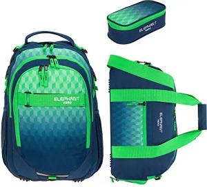 3 Teile Set Schulrucksack Hero Signature Rucksack + Sporttasche + Mäppchen 12609 (Cube Green Blue)