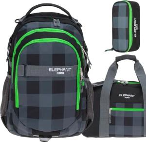 3 Teile Set Schulrucksack HERO Signature Rucksack + Sporttasche + Mäppchen (Plaid Green (12609 Schwarz GRÜN)