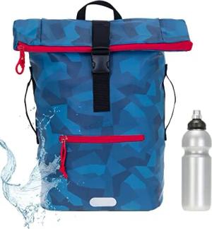 Rucksack Herren Plane Time Bag Kurierrucksack Roll-Top Fahrradrucksack Sport Fitness Damen 23 Liter A4 12821 + Flasche (12824 Cyber Camo Blau)
