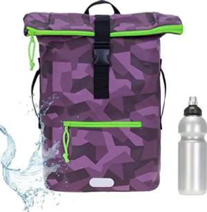 Rucksack Herren Plane Time Bag Kurierrucksack Roll-Top Fahrradrucksack Sport Fitness Damen 23 Liter A4 12821 + Flasche (12824 Cyber Camo Violett)