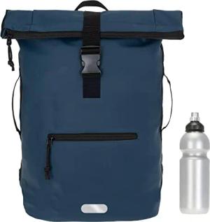 Rucksack Herren Plane Time Bag Kurierrucksack Roll-Top Fahrradrucksack Sport Fitness Damen 23 Liter A4 12821 + Flasche (12825 Dark Blue Uni)