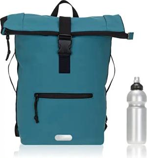 Rucksack Herren Plane Time Bag Kurierrucksack Roll-Top Fahrradrucksack Sport Fitness Damen 23 Liter A4 12821 + Flasche (12825 Petrol Uni)