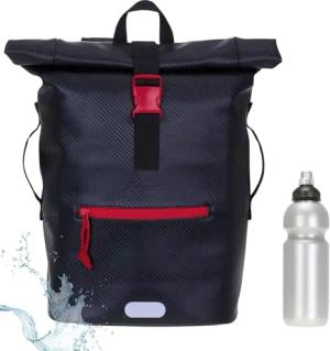 Rucksack Herren Plane Time Bag Kurierrucksack Roll-Top Fahrradrucksack Sport Fitness Damen 23 Liter A4 12821 + Flasche (Carbon Black RED 13075)