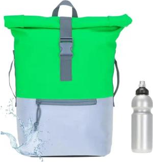 Rucksack Herren Plane Time Bag Kurierrucksack Roll-Top Fahrradrucksack Sport Fitness Damen 23 Liter A4 12821 + Flasche (12825 Neon Viper Green)