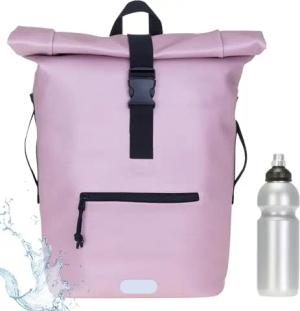 Rucksack Herren Plane Time Bag Kurierrucksack Roll-Top Fahrradrucksack Sport Fitness Damen 23 Liter A4 12821 + Flasche (Rosa Metallic 13074)