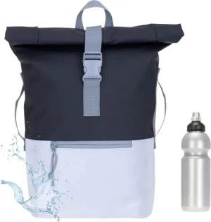 Rucksack Herren Plane Time Bag Kurierrucksack Roll-Top Fahrradrucksack Sport Fitness Damen 23 Liter A4 12821 + Flasche (Pastell Hellblau (3) 12825)