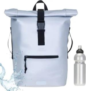 Rucksack Herren Plane Time Bag Kurierrucksack Roll-Top Fahrradrucksack Sport Fitness Damen 23 Liter A4 12821 + Flasche (Silver Titan Metallic 13074)