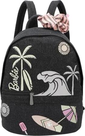 Fritzi Malibu Denim Washed Limited Barbie Backpack Baumwollmix Damen Rucksack Alltag Reisen Freizeit mit Reißverschluss Innenfach verstellbarem Webgurt 31 x 29 x 14 cm, Schwarz